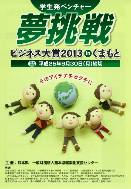本コンソーシアムが後援します「学生発ベンチャー・夢挑戦ビジネス大賞2013inくまもと」のチラシが届きました!