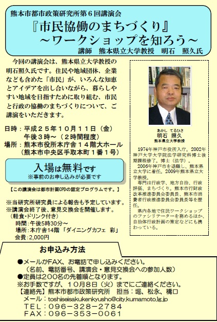 熊本市都市政策研究所 第6回講演会の開催について(ご案内)