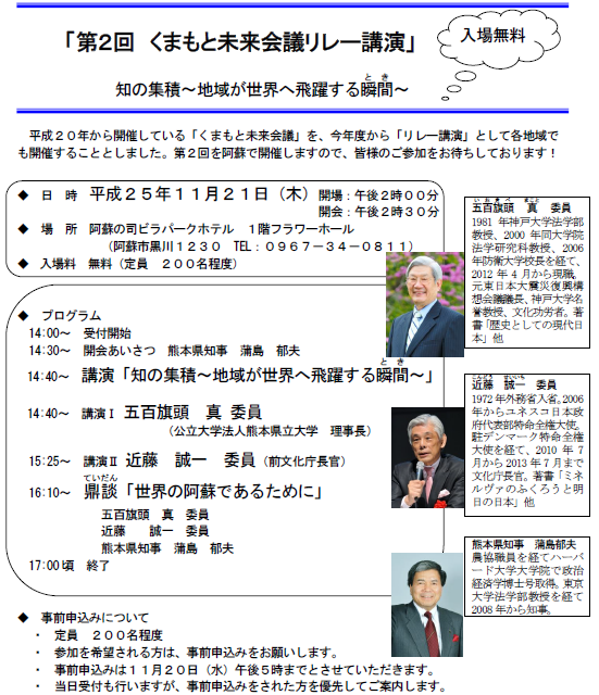熊本県企画課より、講演会のご案内がありましたのでお知らせします。