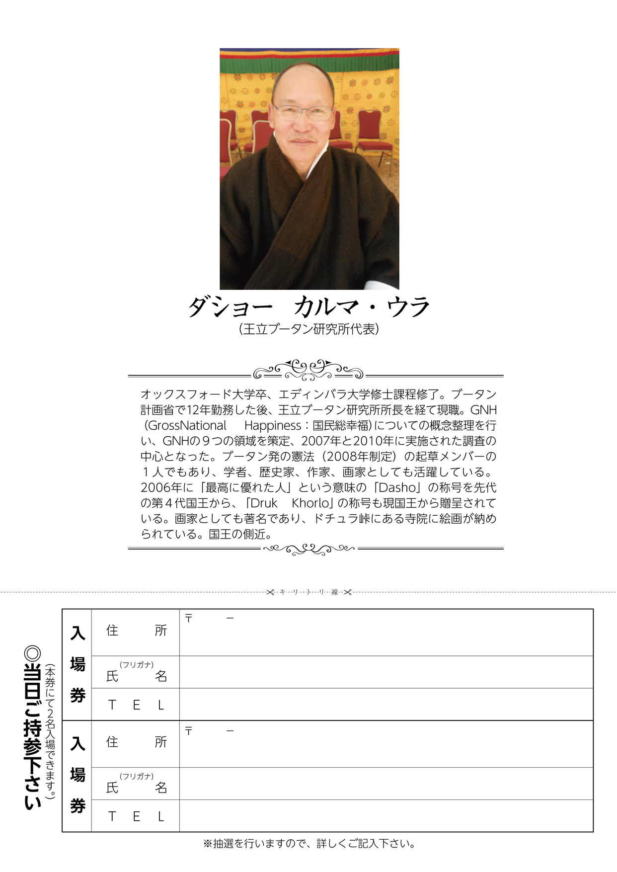 このたび、熊本・ブータン王国友好協会の主催により、「くまもとの幸福を考えるシンポジウム」が開催され、ブータンのGNHと熊本のAKH(※)のパネルディスカッションなどが行われますので、お知らせします。