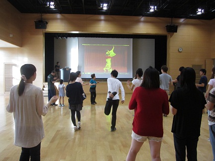 昨日、熊本大学工学部百周年記念館にて、講師の先生をお招きして、1回目のおてもやん総おどりの練習を行いました。