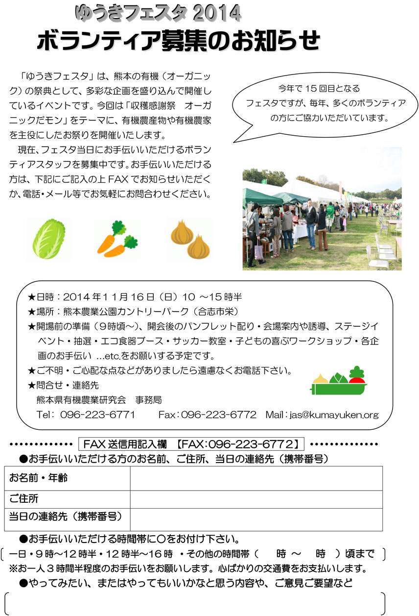 NPO法人熊本県有機農業研究会 「ゆうきフェスタ2014」実行委員会事務局
