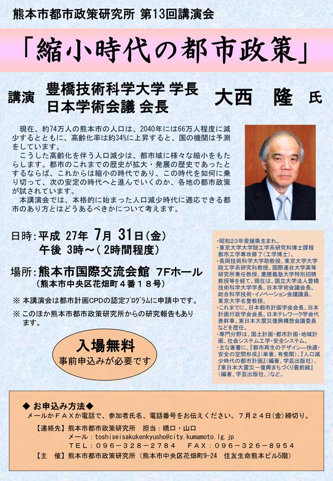 熊本市都市政策研究所第13回講演会の開催について(ご案内)