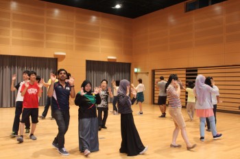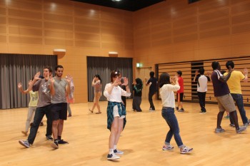 留学生、日本人学生や教職員など17名がおどりの練習に参加しました。
