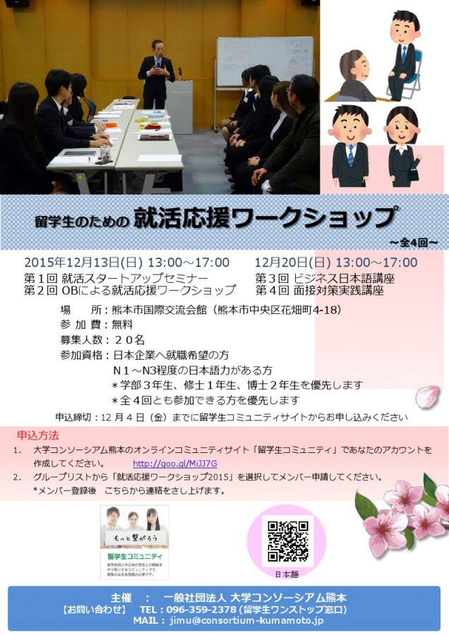 この度、大学コンソーシアム熊本主催・留学生のための「就職応援ワークショップ」(全4回)を開催することになりました。
