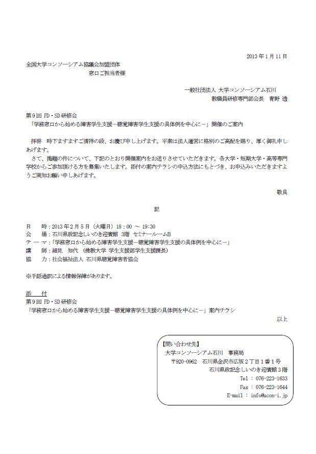 大学コンソーシアム石川主催研修会等開催のご案内 20130205 PDFデータ
